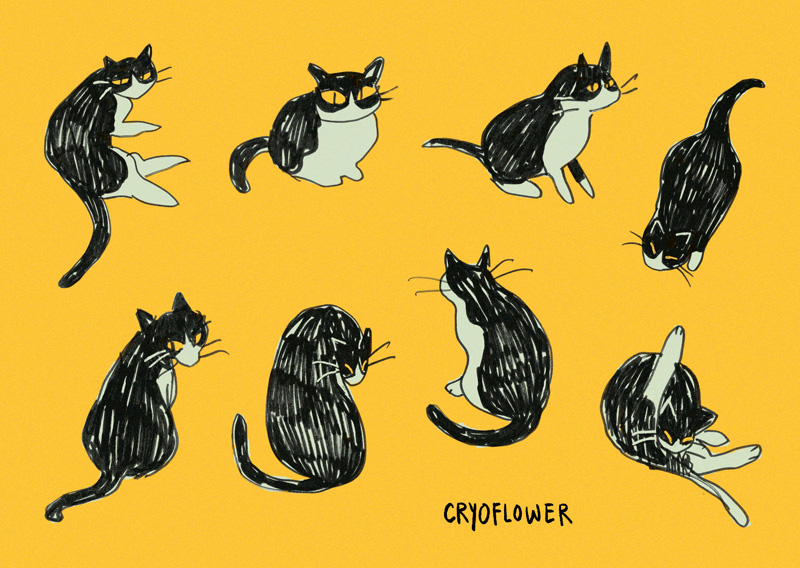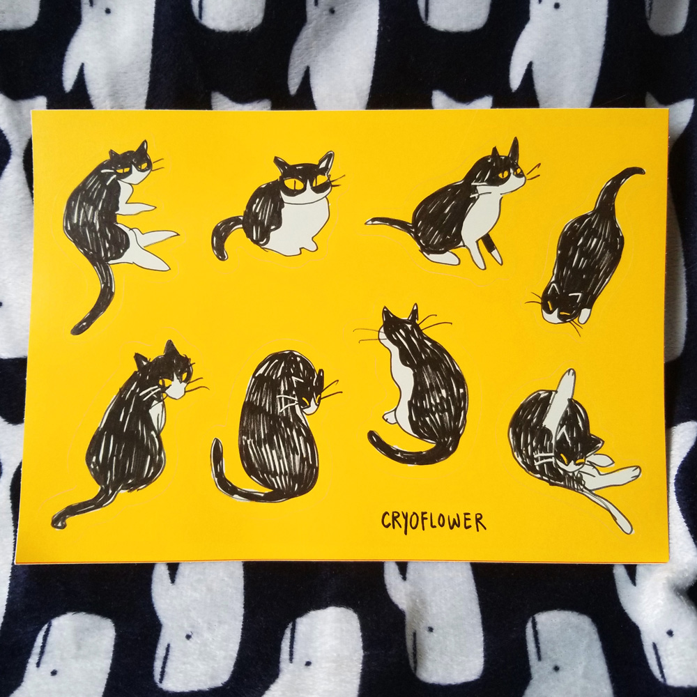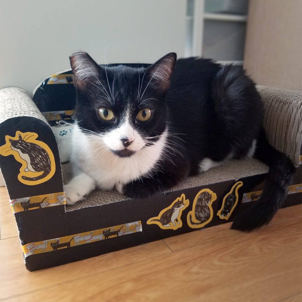 Once upon a time, there was a tuxedo cat who lived in a parking lot named Moomoo. After 5 years of sleeping under cars, she now lives in my apartment as my house cat!