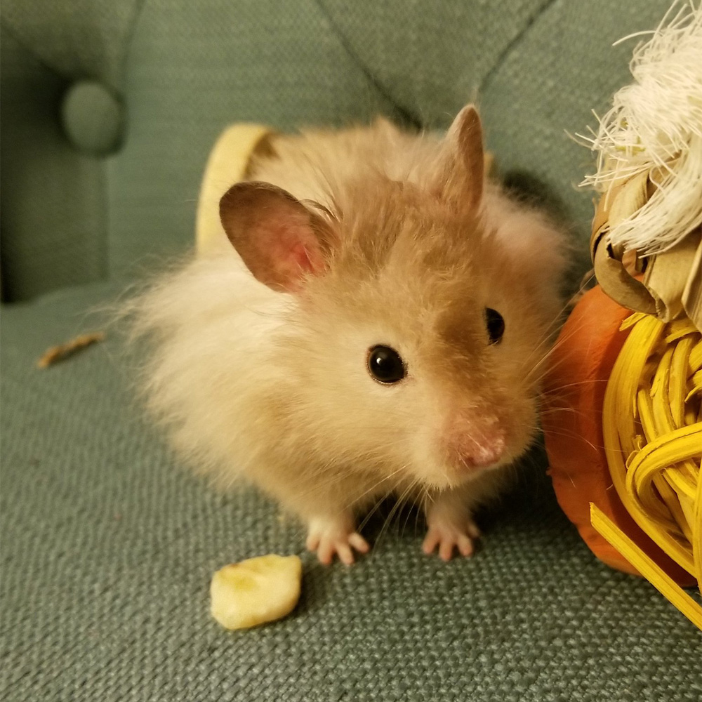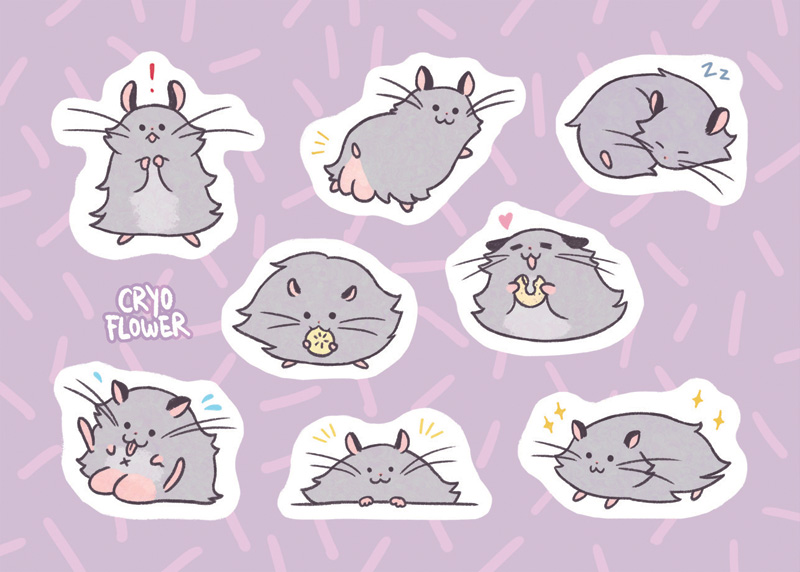 A fun sticker sheet of a long-haired silver hamster. What a pretty boy!