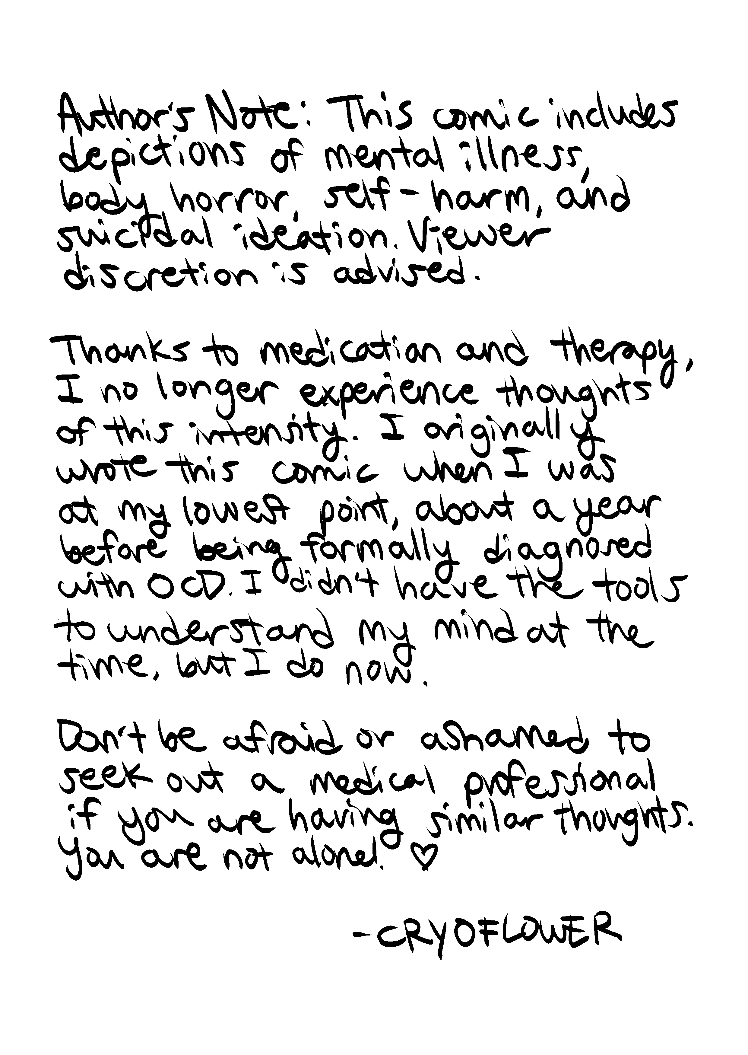This comic contains depictions of mental illness and other heavy themes. Viewer discretion is advised.